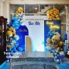 Trang trí khung cổng bong bóng, 2 trụ bong bóng và các trụ bong bóng có ghi chữ Việt Nga.